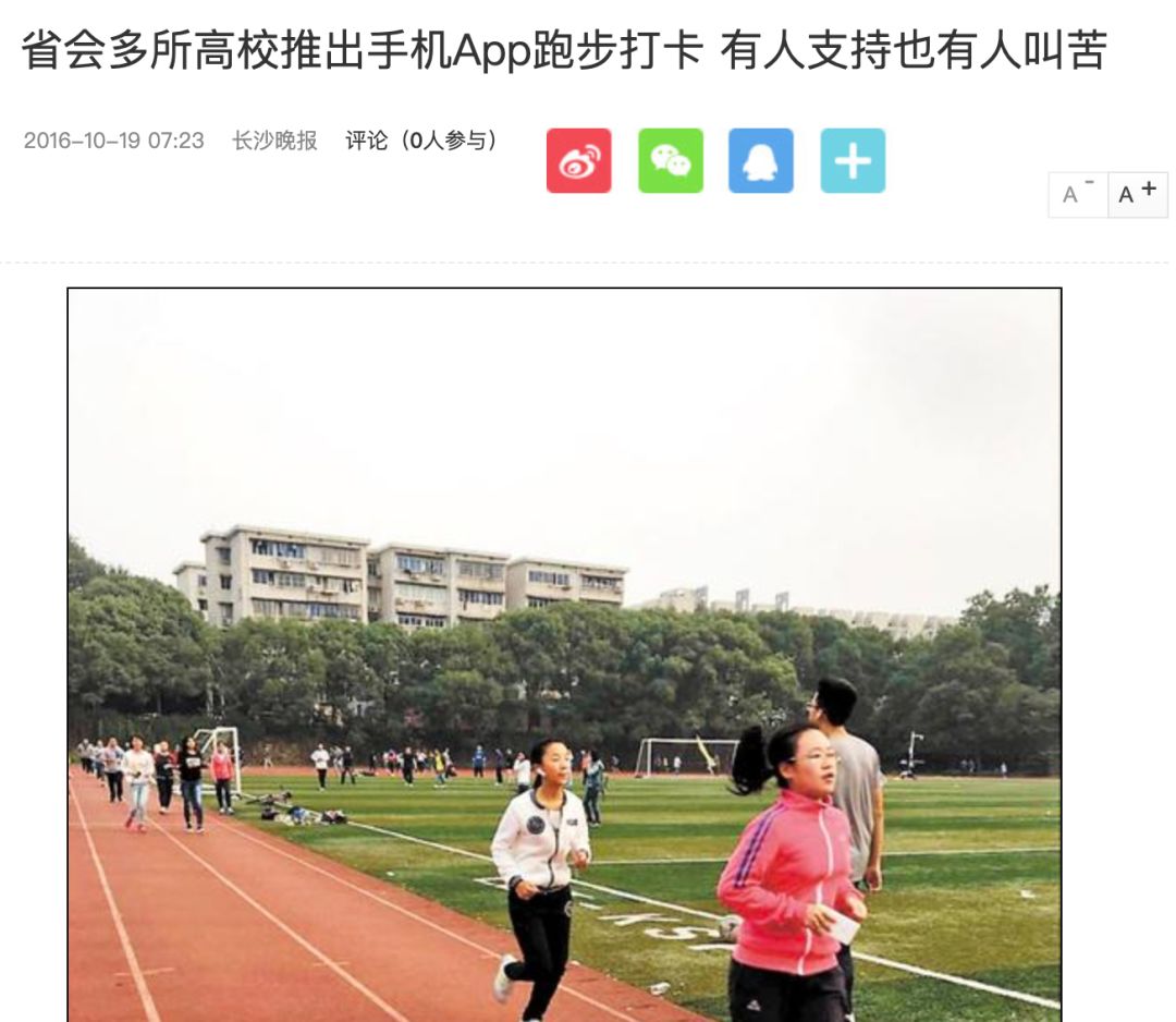 在理论提出以外,也有「无奈」方案的实施,浙江大学从2018级本科生开始,将原来每学期36课时的体育课增加到了54课时,天津大学主办21天燃脂训练营,和学分物质奖励有挂钩,而武汉大学等高校相继发布了跑步App,通过「跑圈」打卡日常考勤。