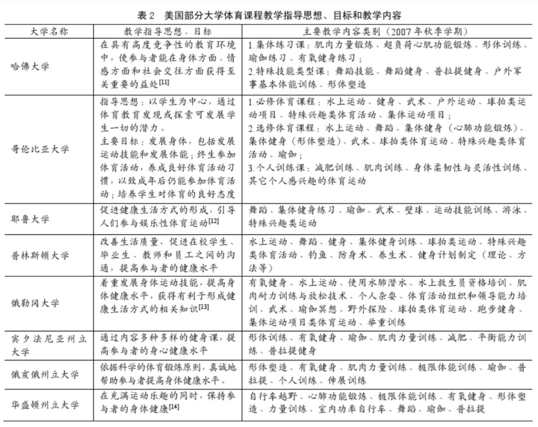 而在《中美大学体育课程设置现状的比较》中提到,包括哈佛、哥伦比亚大学在内的高校,对于肌肉力量、心肌功能、形体等健康体适能素质的训练,是必备项目。