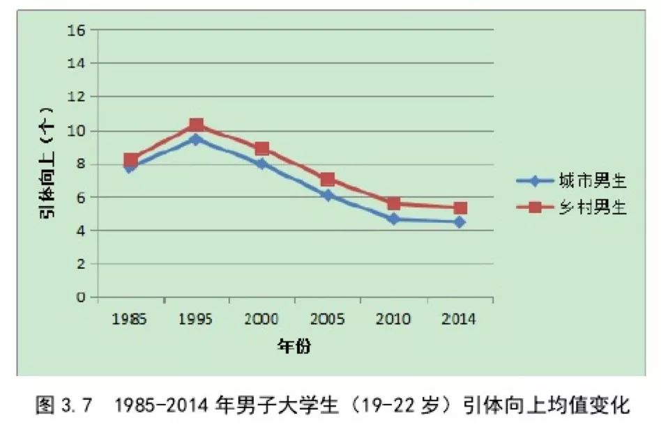 根据2018年《我国大学生人口身体素质研究》显示,从1995年开始,反应力量素质的引体向上成绩,几乎呈现等比下滑,同样在2017年《中国学生体质监测发展历程》显示,我国大学生体质依然呈下降趋势,肥胖率持续上升,每5年提高2%到3%。