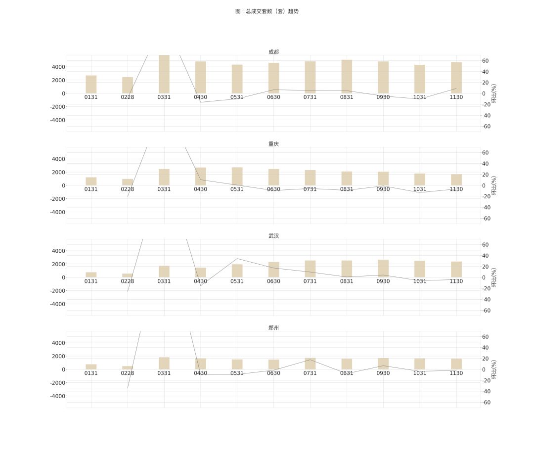 • 与成都相比,重庆二手房交易则稳中有跌;