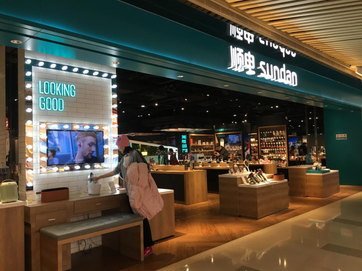 在三里屯太古里顺电,这里经营着许多类别的电子类产品,包括手机通讯、大家电、电脑、厨房小家电、智能设备等。其中,智能设备中就有智能手表这一细分类目。