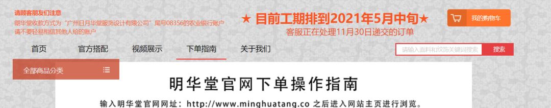 做工复杂加上订单量少,单件汉服的加工费,是一般时装的十到二十倍不等。”汉服的生产周期最长甚至要一年,这很大程度上挑战了习惯“快文化”消费者的耐心。如国内知名汉服品牌明华堂截止12月3日,排期已经排到了2021年5月。在这样的情况下,汉服行业兴起了一种全新的销售模式,预售结合限量限时抢购。
