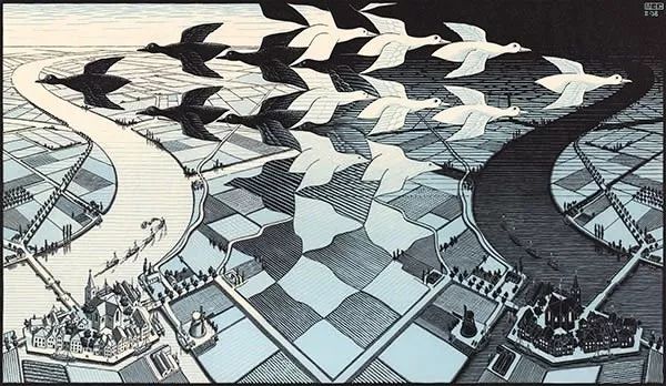 这也是物理学家杨振宁曾经选择爱舍尔的《骑士》作为《基本粒子发现简史》封面的原因。
