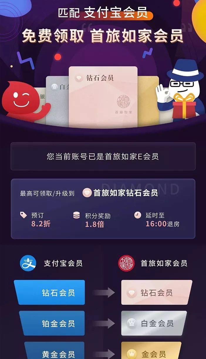 以酒店最关注的会员为例,除了线下门店和自有App之外的渠道,酒店想沉淀用户为会员并不容易。支付宝超8亿的会员体系,是其撬动酒店行业的主要优势之一。