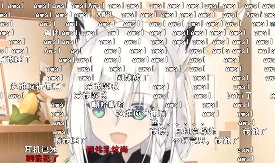 追溯AWSL的B站奇幻漂流,绕不开YouTube知名虚拟主播白上吹雪。这一白发兽耳的女高中生外表甜美,性格安静,妥妥的正统派可爱Vtuber。每当它营业直播时,无数宅男就会在评论区狂刷“卡哇伊”。而当粉丝的激动情绪积累至巅峰,最终在一句“あ、私は死んている”(A Watashiwa Shintei Lu ,即AWSL)中得以释放。