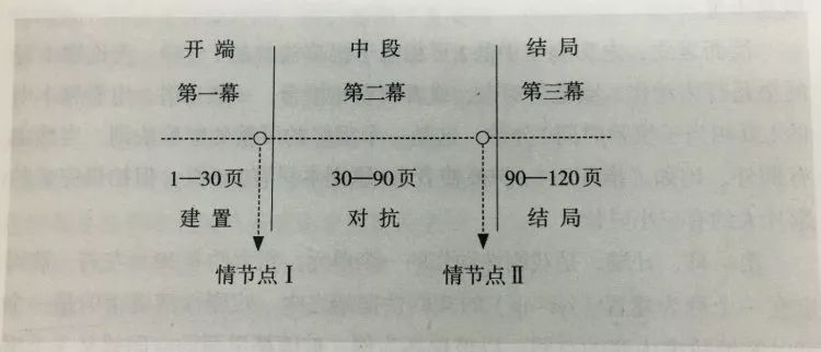 在这一点上,第一部要比《冰雪奇缘2》好太多。就以那首经典的几乎人人都会唱上两句的《Let It Go》为例,如果按照好莱坞知名编剧顾问悉德·菲尔德的剧作理论(如下图),这首歌的出现刚好是在情节点Ⅰ的位置,也就是从电影第一幕向第二幕过渡的阶段。