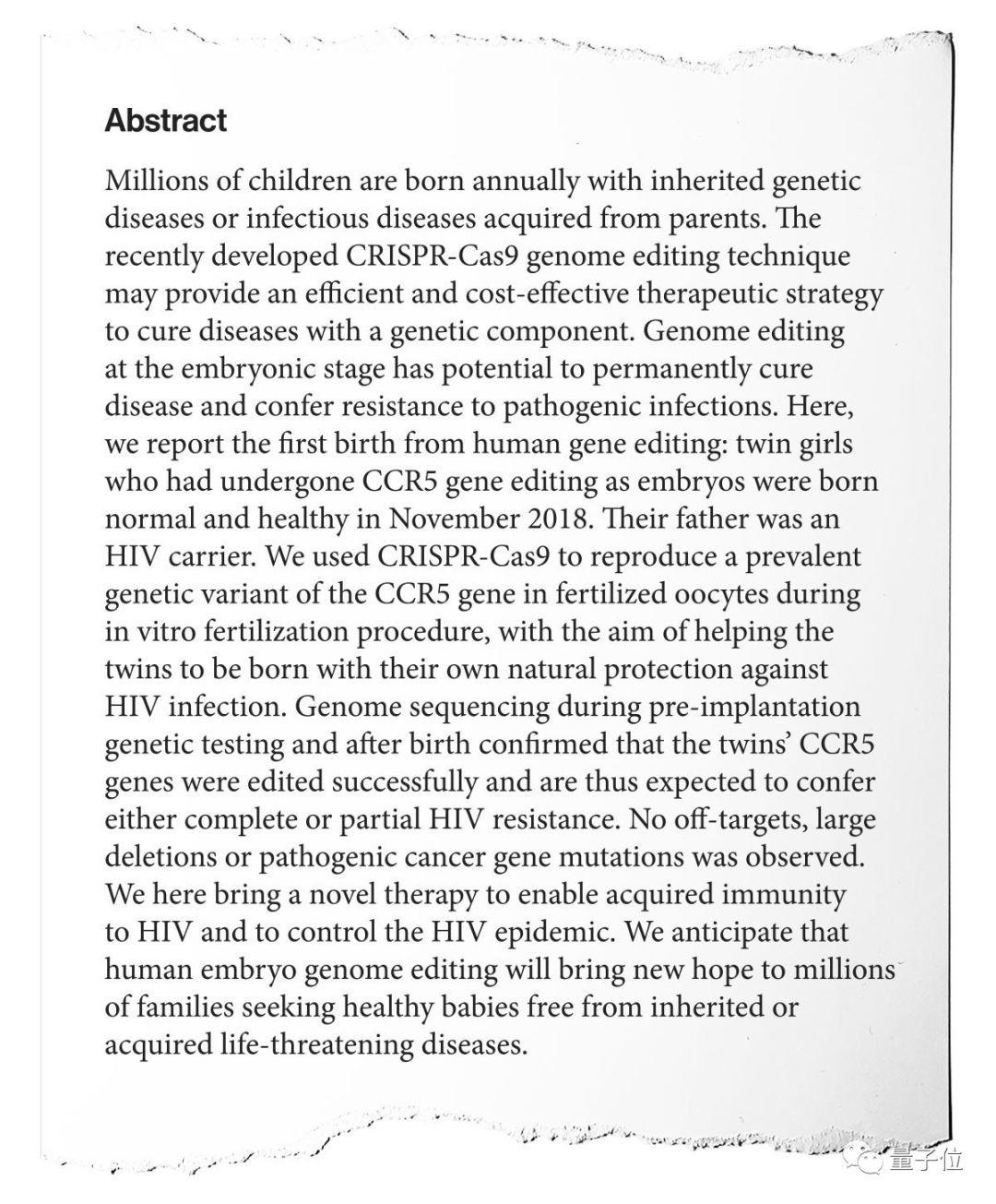 编者按:本文来自微信公众号“量子位”(ID:QbitAI),作者 边策 鱼羊 栗子 乾明,36氪经授权发布。原标题《贺建奎论文手稿意外曝光!基因编辑实验竟充满谎言:HIV抗性未被验证,且造成意外突变》