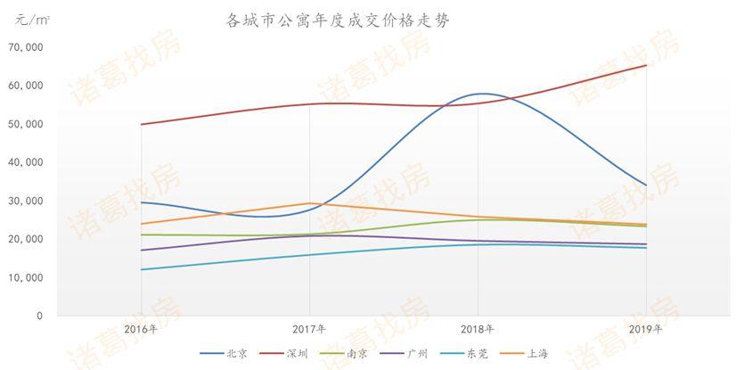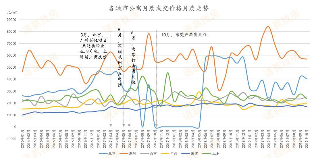 深圳由于新建住宅项目稀缺,虽然政策挤压了一部分需求,但价格仍较为坚挺,2019年前10月,深圳公寓平均价格为65196元/㎡,与2018年相比上升18%。