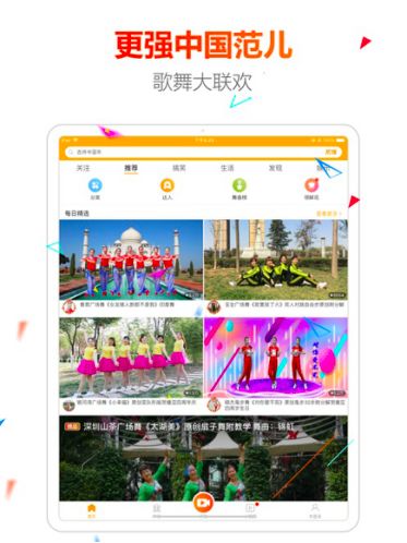 首页上有图文、短视频和直播,对于推荐内容同糖豆、美篇、小年糕的pgc达人内容为主不同的是它主推ugc内容,这就要求视频要有一定的内容及制作水准,可以吸引其他人点击互动,产生价值。