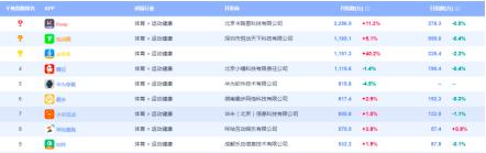 在运动与健康类产品中,糖豆凭借两千万+的月活、足够垂直的用户人群可在运动健康类排名前五且活跃程度高于咕咚和手机厂家小米华为运动。