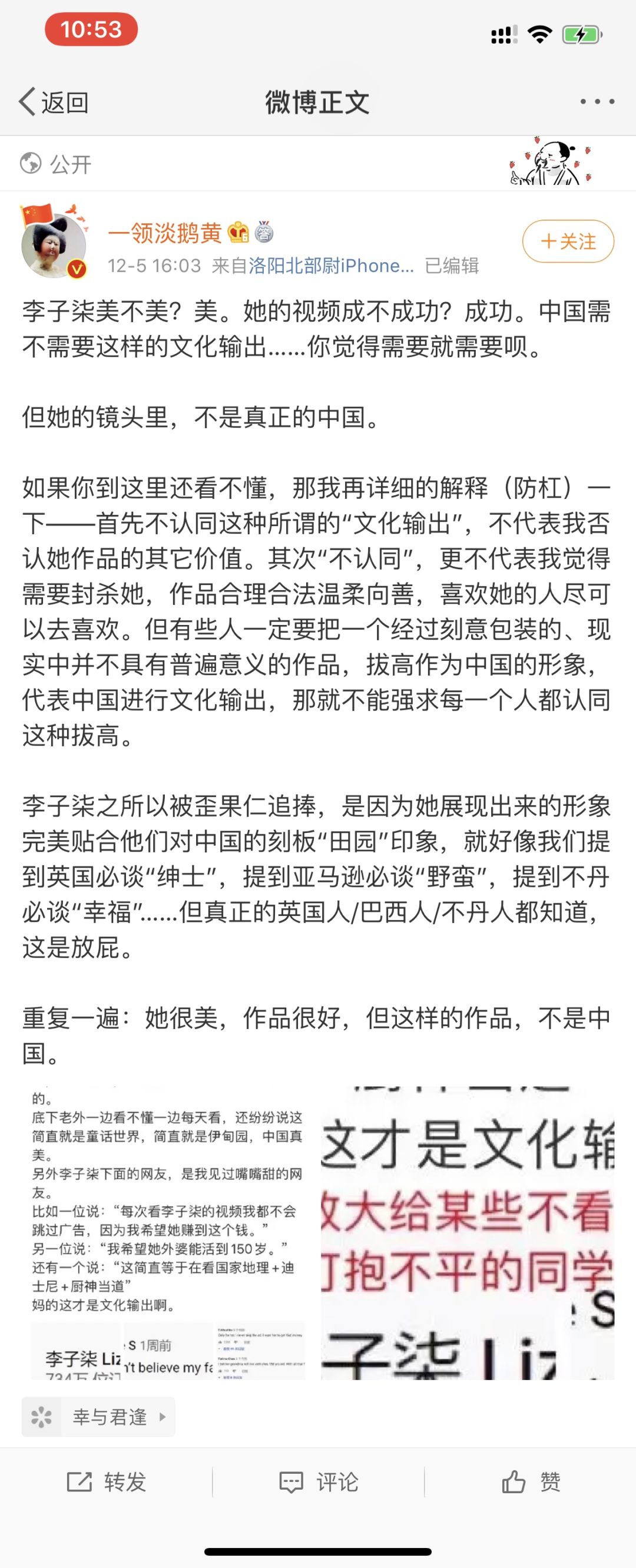 总结一下,认为李子柒不算文化输出的,无非就是三个论点: