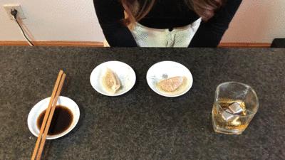 到了钱大姐的芹菜猪肉饺子了,讲究仪式感的钱大姐早已倒好了威士忌,调好了醋。饺子配酒,越喝越有。