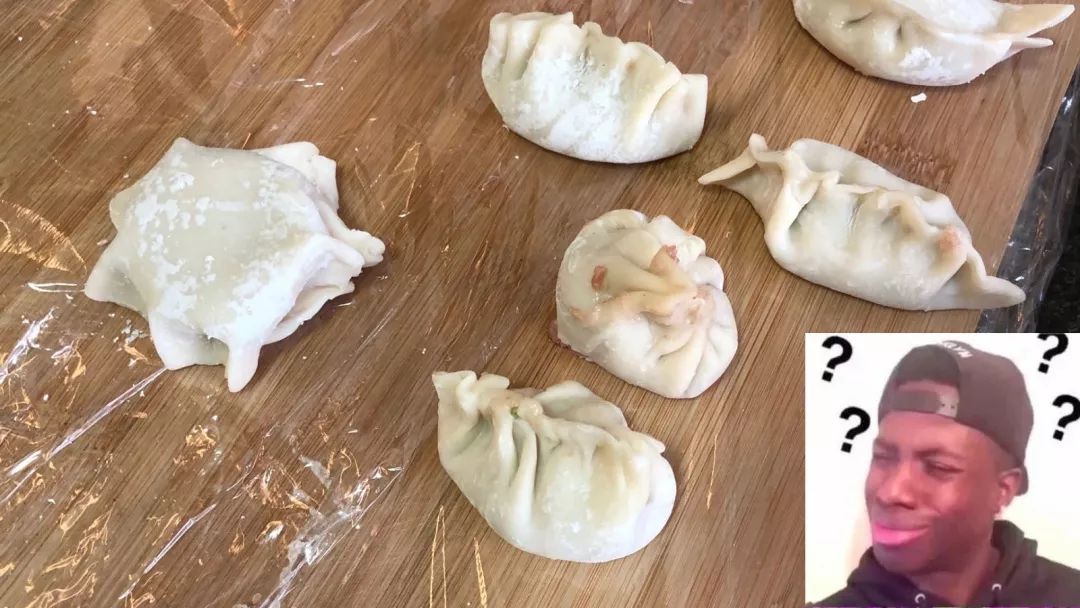 「妈呀,这根本不是饺子啊,这个右边的绝对是人造肉,这一点也不香啊。」