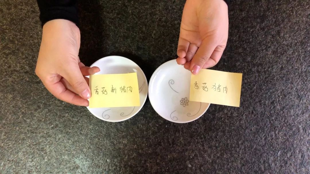 纸条一翻,大家又猜对了,左边的是人造肉饺子,右边是真猪肉饺子,尽管咸点,但还是「真香」。