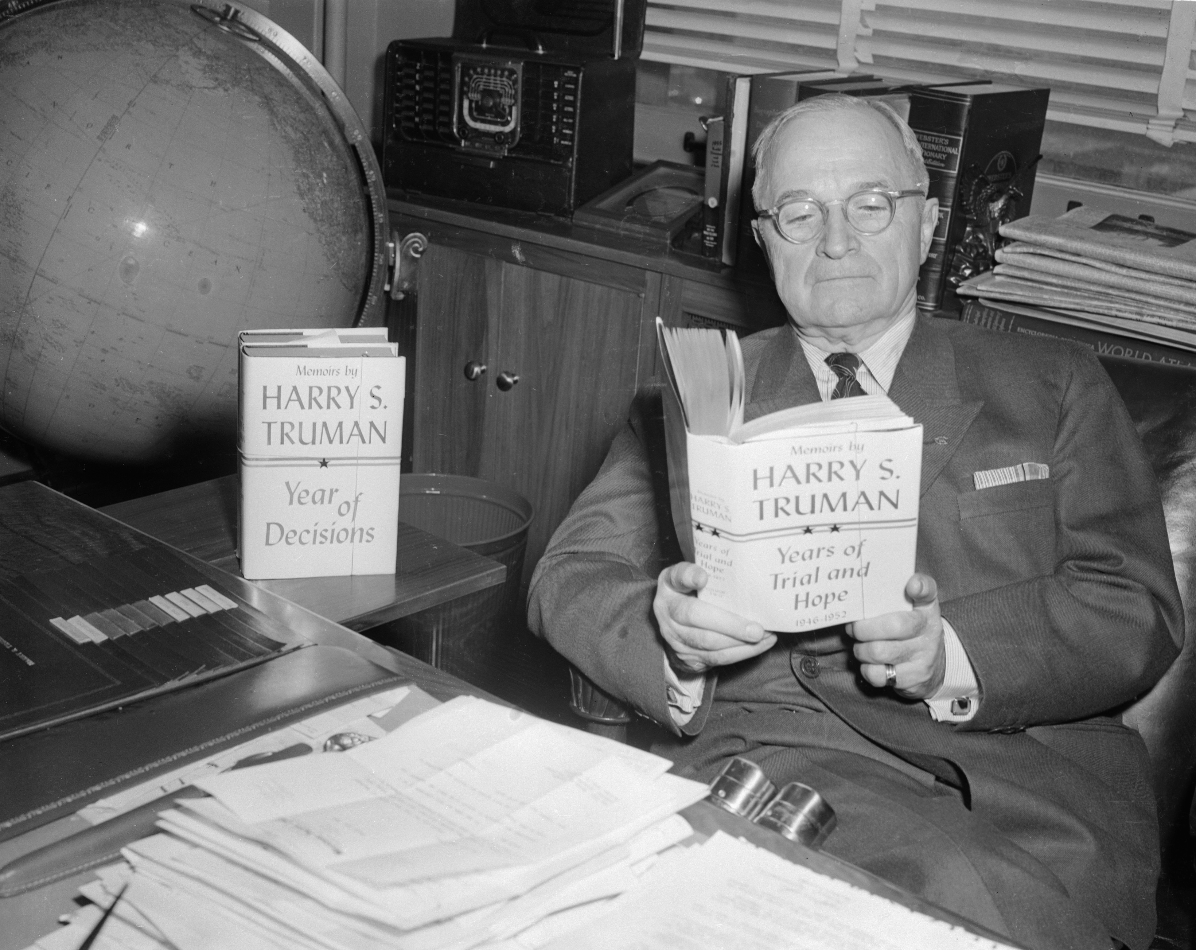 想想Truman,1945年4月他的前任Roosevelt出人意料地溘然长逝后,他登上了总统宝座。几个月内,他发现自己身处原子时代的黎明和新的冷战前夜。这些都是非常新的问题,但是Truman——从小就开始了养成了阅读习惯——选择了从历史中吸取教训。