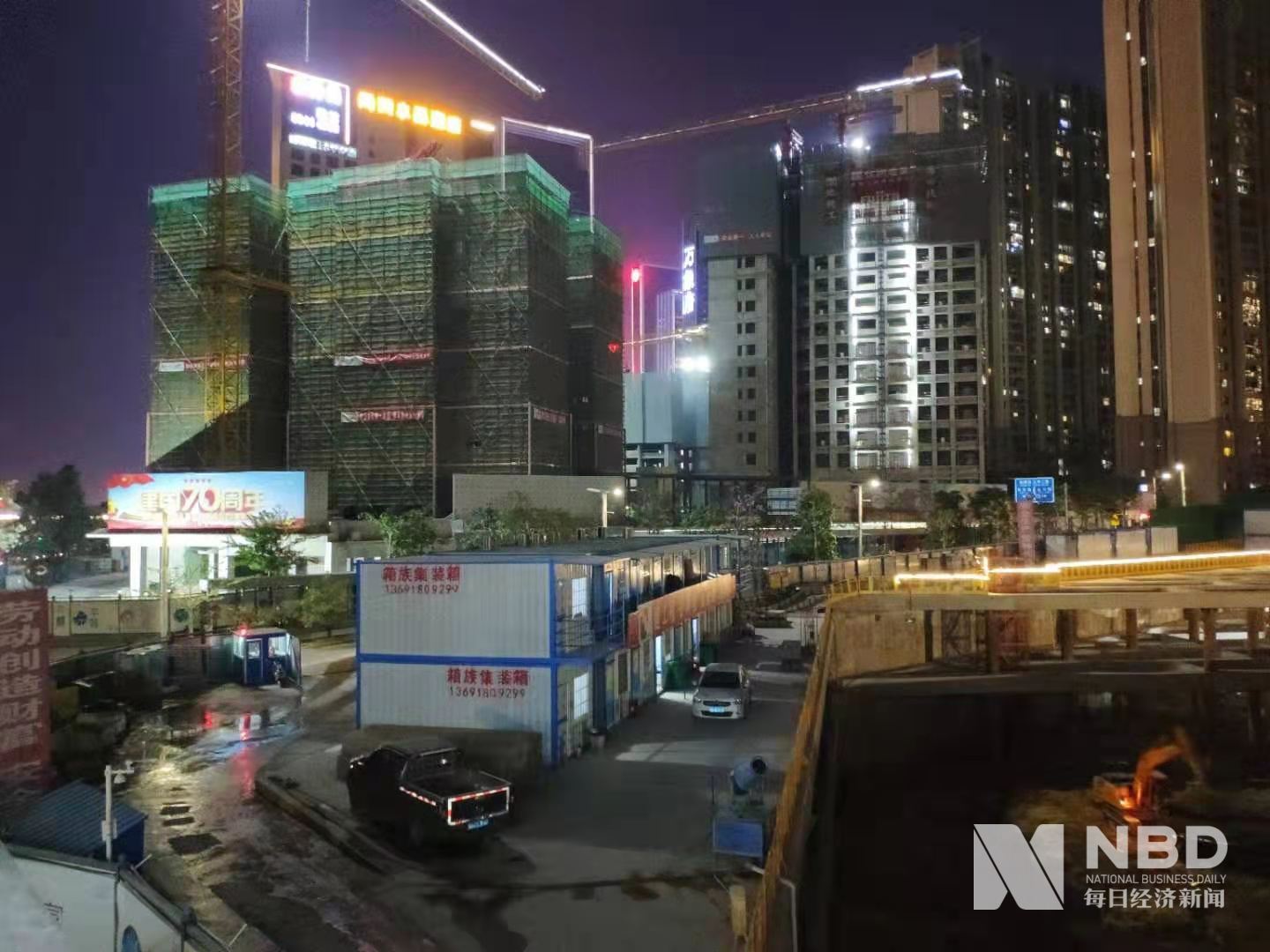 夜晚仍在施工的深圳某大型装配式建筑工地 图片来源:每经记者 甄素静 摄