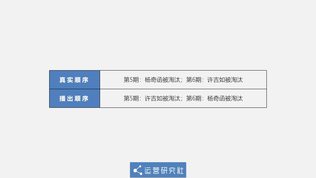然而,“调换节目顺序”的操作被曝光后大家就会发现,被提前播出的许吉如明显比杨奇函多了一周的复活时间。
