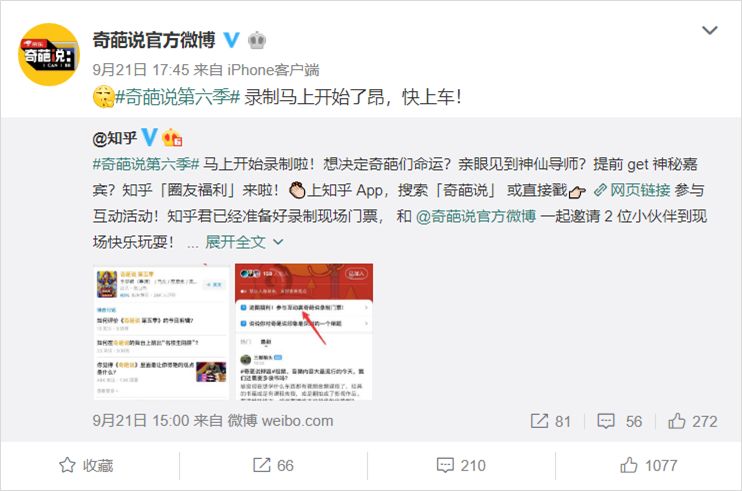 早在 8 个月前,《奇葩说》就开始了海选预热,然后又借助当红综艺《乐队的夏天》做宣传,表示旅行团乐队鼓手@徐大刀 要来参加《奇葩说》。5 个月前开始辩题征集,还联合知乎做宣传并送录制门票。