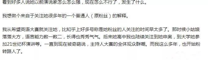 据网友爆料,许吉如在21世纪演讲时还在清华读书,在《演说家》时还在律所上班,可当她走上《奇葩说》、《主持人大赛》这样的舞台时,已经孑然一身:她切断了自己的后路辞去了律所的工作,卖网课也是备受差评,再看看各大社交平台的粉丝数量,经过频繁的综艺节目的消耗,折损大半。