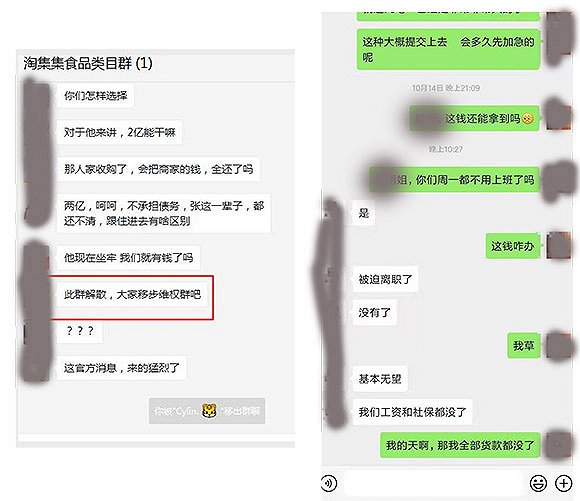 12月7日晚间,部分类目群已经解散,淘集集内部也有员工离职。多个积压资金超过100万的商家已经无法与淘集集官方取得联系,包括此前支持淘集集平台重组的商家都产生了恐慌情绪。部分商家已经来到上海向淘集集讨要说法,或希望通过集体诉讼走法律途径解决问题。