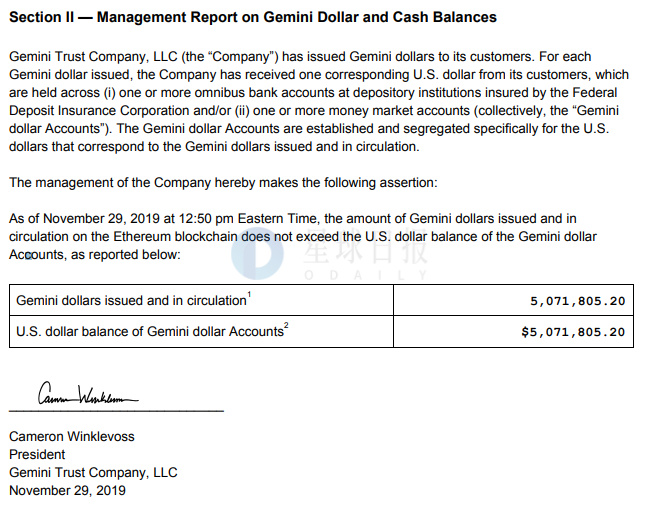 Gemini 11月独立会计师报告:发行流通的GUSD已降至507.18万枚