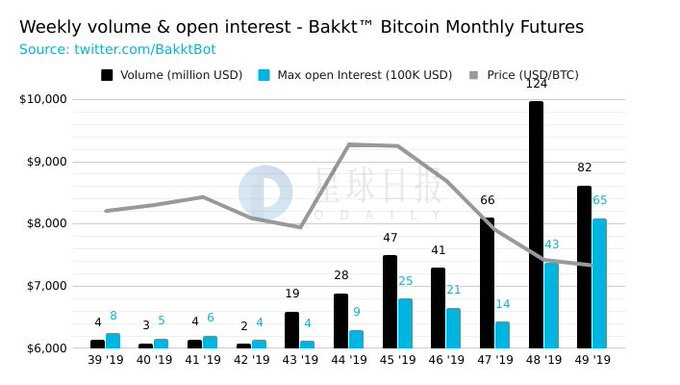 本周 Bakkt比特币月度期货交易额达到8200万美元