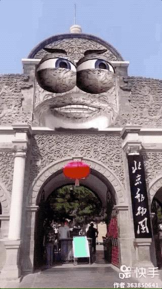 前阵子还流行过一种地标 AR 的短视频玩法,能让北京太古里、岳阳楼、黄鹤楼等景点建筑突然变身搞怪的卡通形象,快手也是国内首家实现这个功能的 app。