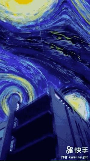 用户只要轻点屏幕,背景的天空或地面就能瞬间变成梵高的著名画作《星月夜》,「夜色」像泼墨般流淌在画面之中。