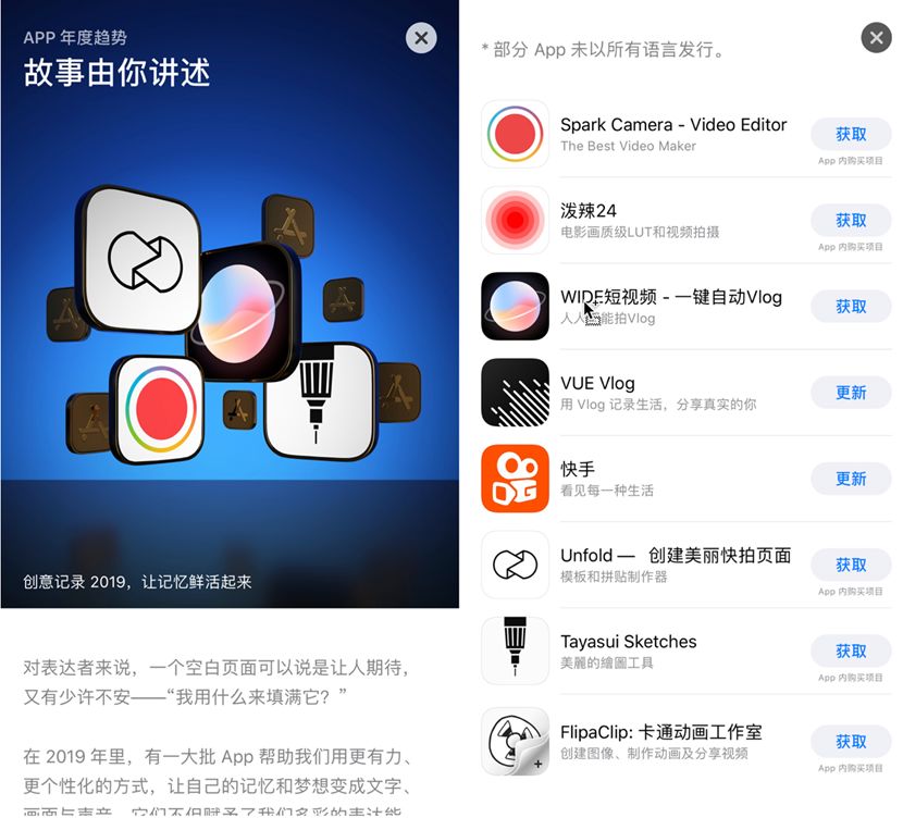 正如苹果年度趋势 app 推荐榜单上所述,2019 年里,有大批 app 帮助我们用更有力、更个性化的方式,让自己的记忆和梦想变成了文字、画面与声音。