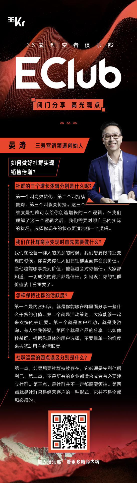 「三寿营销频道创始人」晏涛:如何做好社群实现销售倍增| E-Club创变者俱乐部专属分享