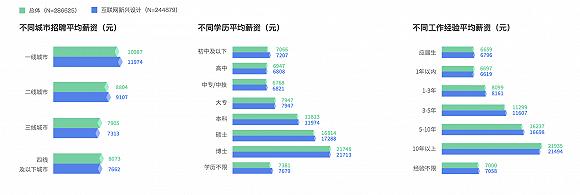 在薪资方面,互联网新兴设计平均薪资为9418元,高学历(本科以上)、有丰富经验(3年以上工作经验)的人才平均薪资高于整体。同时,大型企业对人才学历要求较高,超过九成设计相关岗位需要本科及以上学历。