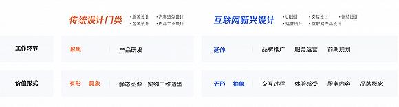 《白皮书》首次提出并定义了全新的职业形态——互联网新兴设计,指以应用互联网技术为特征,关注用户体验、交互过程等,服务于数字化产品与服务的综合性设计。传统意义上的设计主要针对实物产品,而新兴设计已变得无形抽象,如界面设计、UI设计、用户体验等。