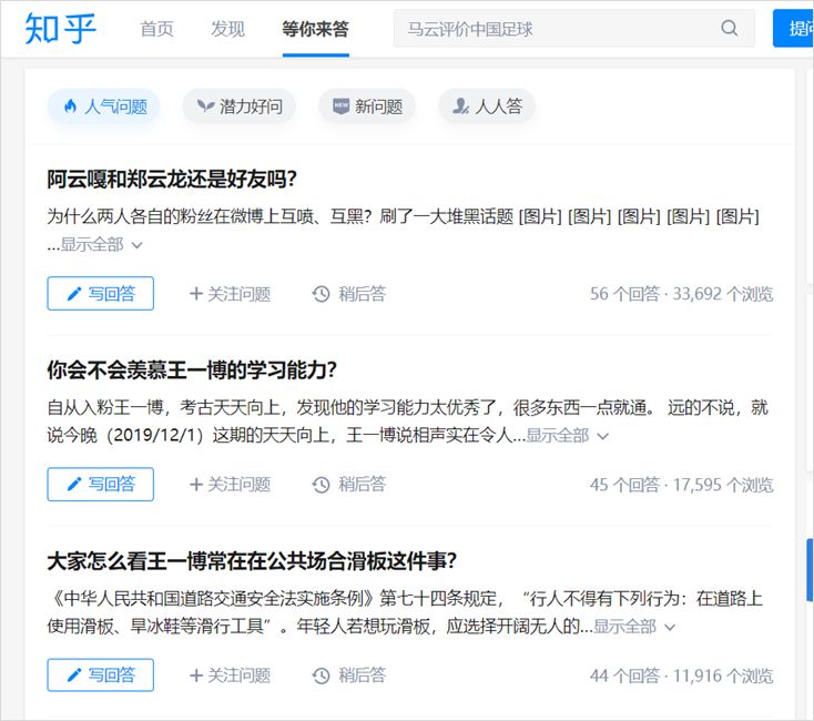然而现实是,现在知乎的早就已经像微博、头条那样被娱乐、明星等内容占领了。“等你来答”上的人气问题,乍看简直是微博的翻版。