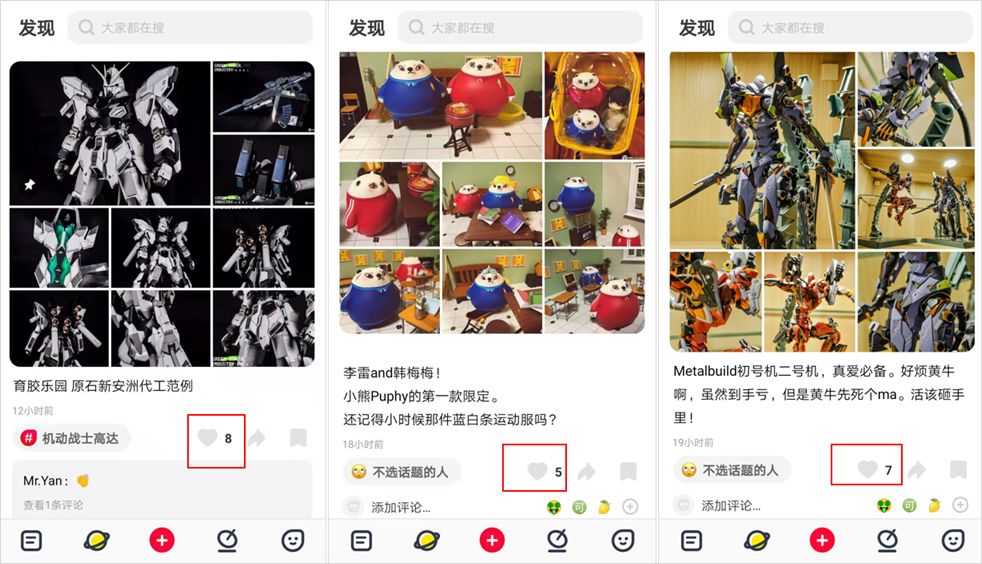 为了改变这一状态,知乎在今年 5 月份对软件进行改版,将产品定位从“男性种草软件”调整为“潮流好物分享软件”。试图通过高达、钢铁侠等潮流拼装模型的来吸引更多的男性用户,活跃社区提高软件热度。