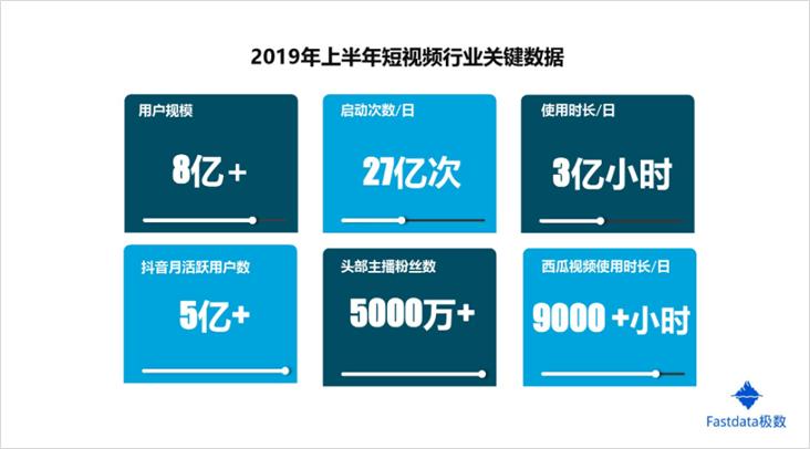 据 Fastdate 极数统计,19 年的短视频行业用户规模将超过 8 亿,头部的企业抖音的月活用户超过 5 亿,日使用时长达到恐怖的 3 亿小时。