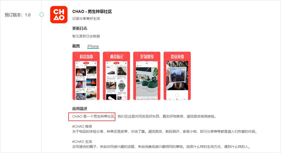 于是在今年 2 月,知乎就上线了一款男性种草软件「CHAO」,主要为男性推荐好物,并提供潮流单品的试用测验。