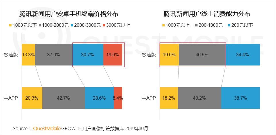 4.2 腾讯新闻极速版吸引更多高价值人群:手机终端价格高、线上消费能力高