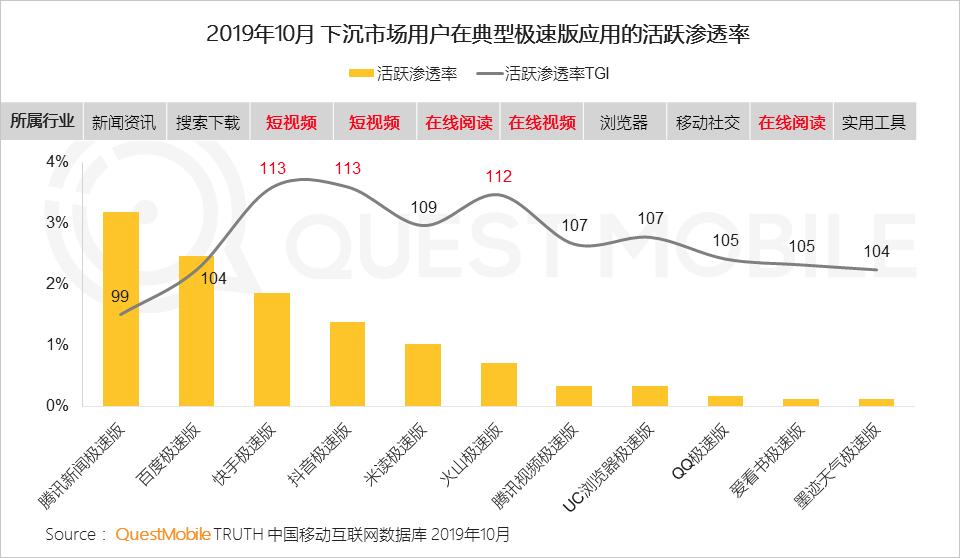 1.2 下沉市场用户在短视频、在线视频、在线阅读等泛娱乐类极速版应用更为活跃,对短视频的偏好尤为显著