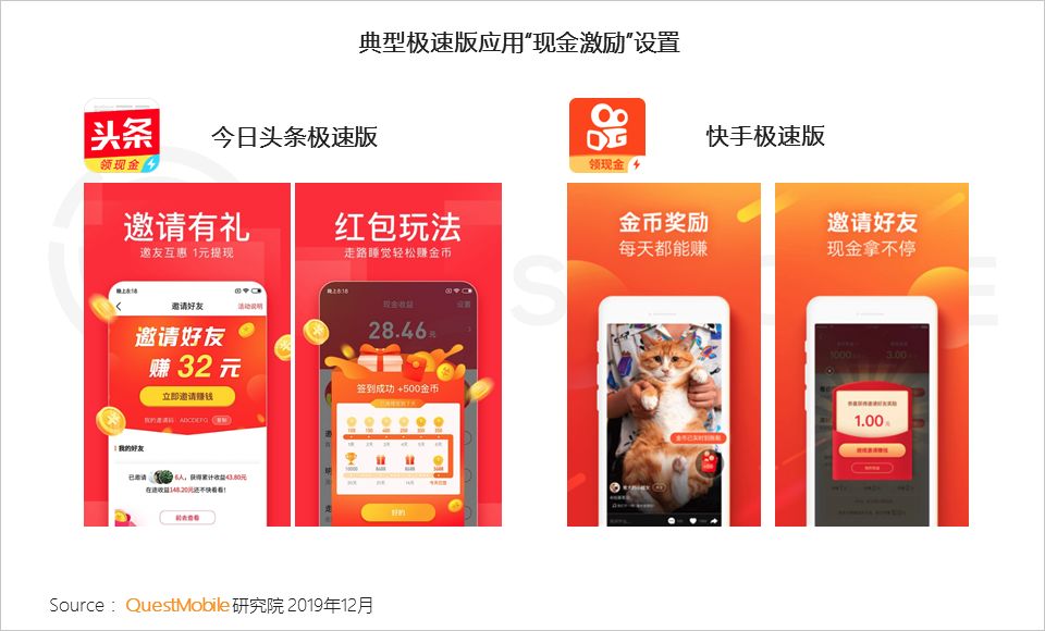 4、用户对效率的追求,使“极速版”应用应运而生,一方面对准更加垂直细分人群,提升用户体验;另一方面极速版可以有不一样的玩法来吸引下沉用户,助力企业争夺流量