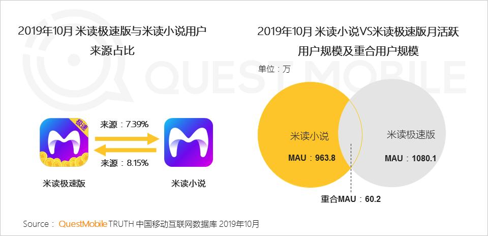 3.2 在线阅读极速版和主APP用户互为独立:米读小说和米读极速版的用户重合率低,且用户在两者之间的流动性小,各自用户群体不同