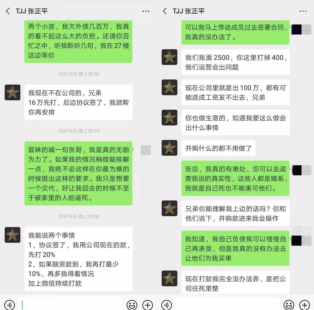 一位代表商家与张正平进行谈判的商家告诉凤凰网科技(微信搜:iFeng科技),张正平在十月曾透露公司账面仅剩2500万,“我们账面2500...现在公司就是出100万,都有可能造成工资发不出去”。