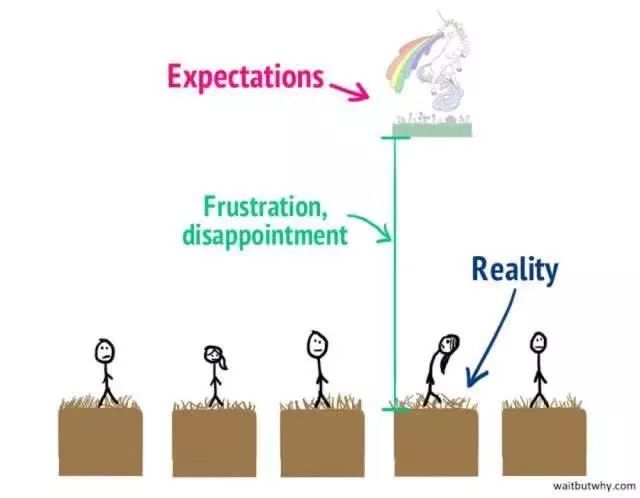 来自网站Wait But Why的灵魂画手Tim用漫画表达了来自他的抗议,他认为,“幸福=现实-预期”。