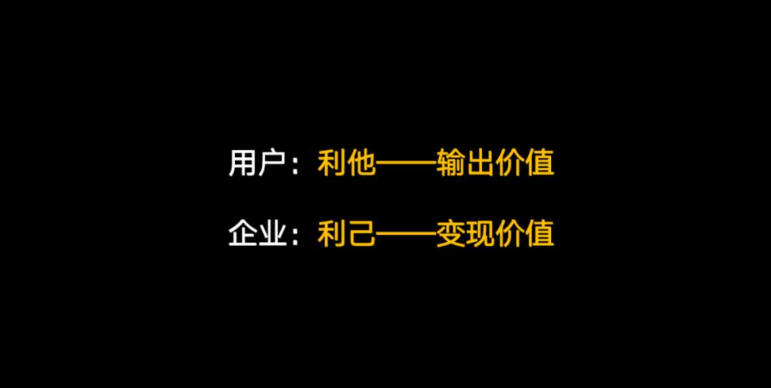 第一,对用户要考虑利他,输出给它们价值;第二,对企业自身,要合理考虑利己,变现价值是什么?这样才是对的。