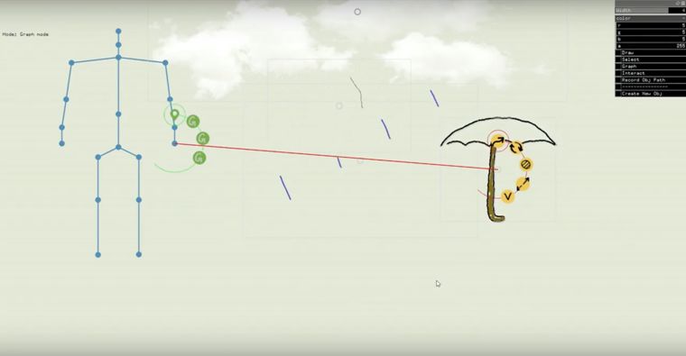 接下来,Saquib想要在演示时用自己的左手撑伞。要完成这一套动作,只要拖动鼠标,找到“左手”支点,将“左手”与“雨伞”相连即可,相连的位置也是可以设计的。