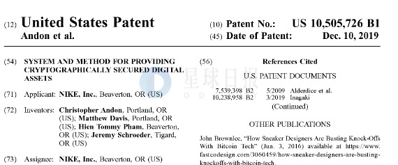 当地时间 12 月 10 日,耐克旗下名为“ CrpytoKicks”的区块链兼容运动鞋专利申请获得美国专利局批准。