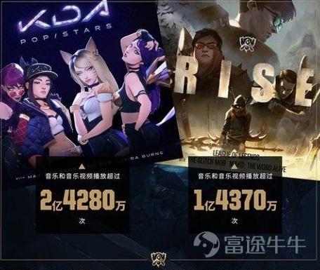 音游的结合也早已成为营销的成功范例,由撸啊撸游戏人物打造的虚拟女团KDA以及联赛主题曲,播放量都是亿级别。