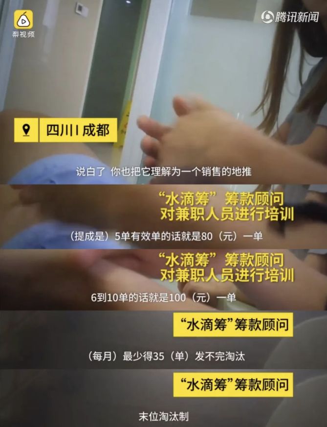 为了获得更多的“有效单”,水滴筹更是设置了末位淘汰制:要求销售顾问每月至少完成 35 单