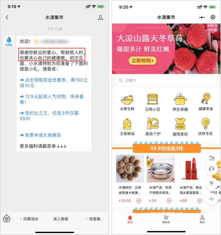 水滴集市,一个号称精准扶贫平台,依托水滴平台的流量做起了电商生意。平台建立的初衷是帮助解决乡村货源问题,曾经还得到过央视的认可。