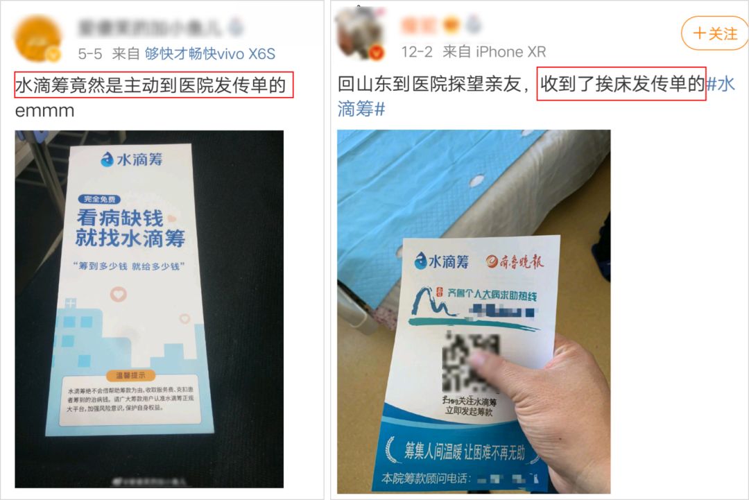 前段时间,水滴筹被曝光“扫楼式”地推事件闹得沸沸扬扬,据说“地推”人员为了做业绩拿提成在各大医院发传单、拉“客户”,还有意隐瞒求助者的资金情况,有百万房产甚至也能发起筹款。