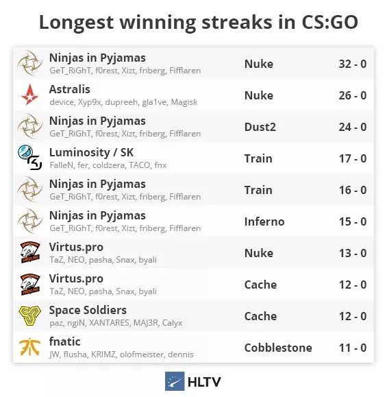 一支名为NiP的瑞典战队。几乎包揽了2013年所有的冠军。NiP也在Nuke这张地图上创造了连续32场胜利的纪录。这纪录,至今仍无人打破。